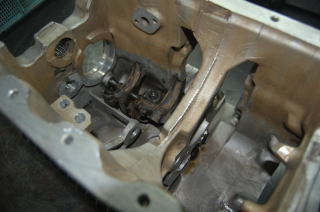 ベルクランクピボットピン(シフトレバーの入るシャフトです) ここのОリングも交換です、昔はここОリングあまり替えなかったのですが、 以前ここからオイル漏れを発見してからは ミッションオーバーホール時は必ず交換しています |
