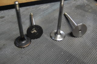 エキゾーストバルブはバルブフェースが虫食いのように 痛んでいるのでリフェースします。 |
