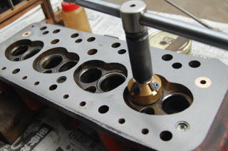 今度は当たる面の幅を修正ではなくて 当たる面自体の修正です。 沈んだところに合わせて他の部分を削っていきます。 こういう作業が出てくるため作業前に燃焼室からバルブが沈んでいるようなヘッドかどうかをあらかじめて点検しておくことも大事ですね。 |