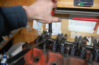ヘッド ブロック ミッションをドッキングさせてタペット調整です。 このタペットを調整する工具ですが マイナスドライバーの外側に1/2ソケットがハンドルで回せるようになっていてタペット調整が楽です。 20年以上前ににスナップオンで買ったんですがずっと使っています。 オイルポンプはスイフチューン製です これも昔は精度の悪いポンプ(スイフチューン以外)があったりで買っても使えないとか苦労したことがありましたが、スイフチューンの物は良いです それでも測定してから使うようにしています。 エンジンは赤で塗装しました。 3回くらい塗って艶を出して塗膜を厚くします。 後は水栓を付けたりウォーターポンプ、オイルフィルター サーモスタット等付けて 内燃機屋さんにお願いしているフライホイールは若干の軽量をバランス取りから帰ってき次第、 組み付けて完成になります。 |