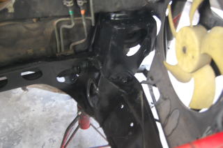 エンジンを載せる準備です 痛んでるタワーマウントの交換ですが うちでは純正の物よりも硬く レース用のコンペの物より柔らかい 物を作ってもらって使用しています 形は上も下も丸型です |
