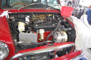 エンジン載せました 配線やウォーターホースに無理が掛かからないように このミニに合ったように付けていきます。 |